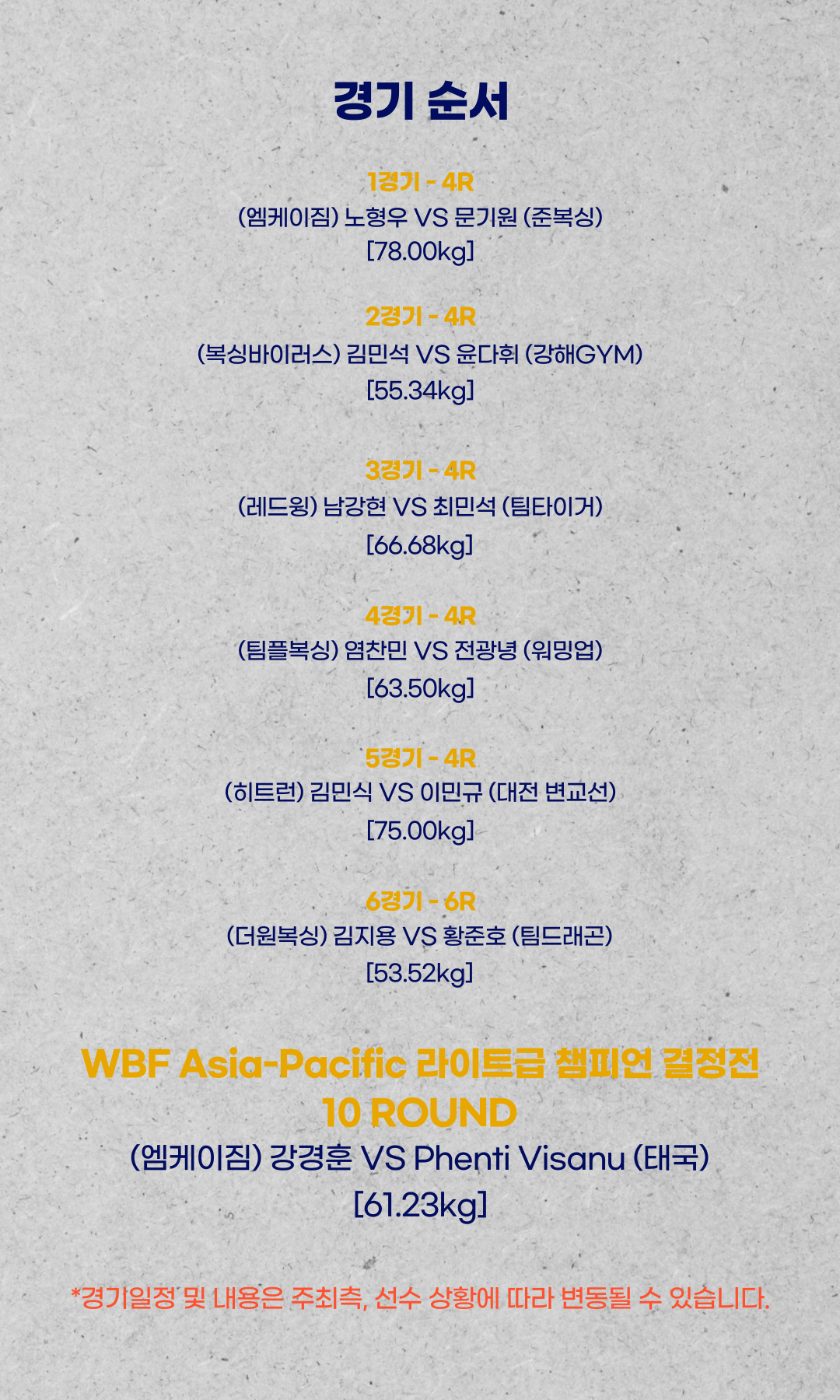 WBF 아시아퍼시픽 라이트급 타이틀매치 '강경훈 vs 피네티 비사누' 티켓 구매 링크