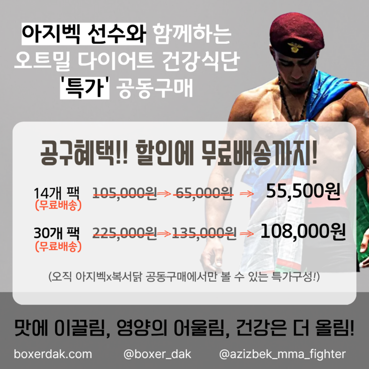 아지벡 x 복서닭 오트밀식단 복서닭, 공동구매 특가할인 비밀링크